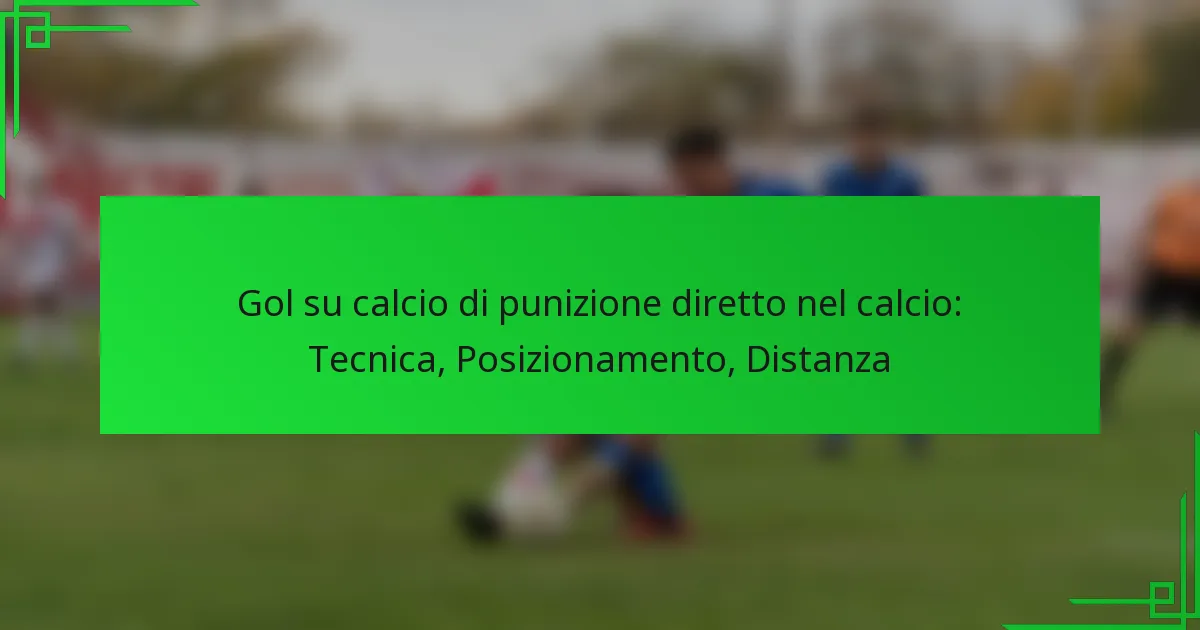 Eseguire un calcio di punizione diretto nel calcio richiede una combinazione di tecniche precise, posizionamento del corpo e concentrazione mentale per aumentare il potenziale di segnatura. Mirando a aree specifiche della porta, come gli angoli e i punti ciechi, i giocatori possono migliorare le loro possibilità di successo. Inoltre, la distanza dalla porta gioca un ruolo critico, richiedendo aggiustamenti nella tecnica e nella potenza per un’esecuzione efficace.